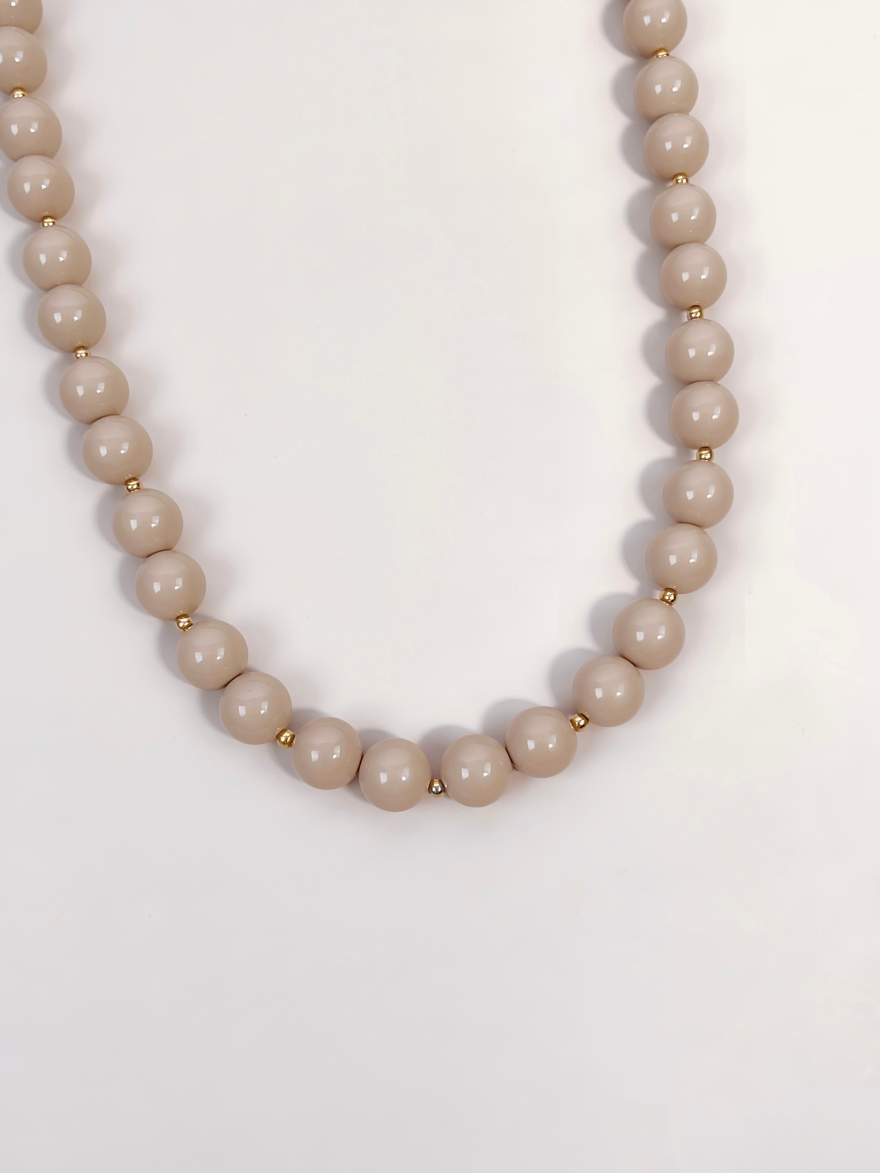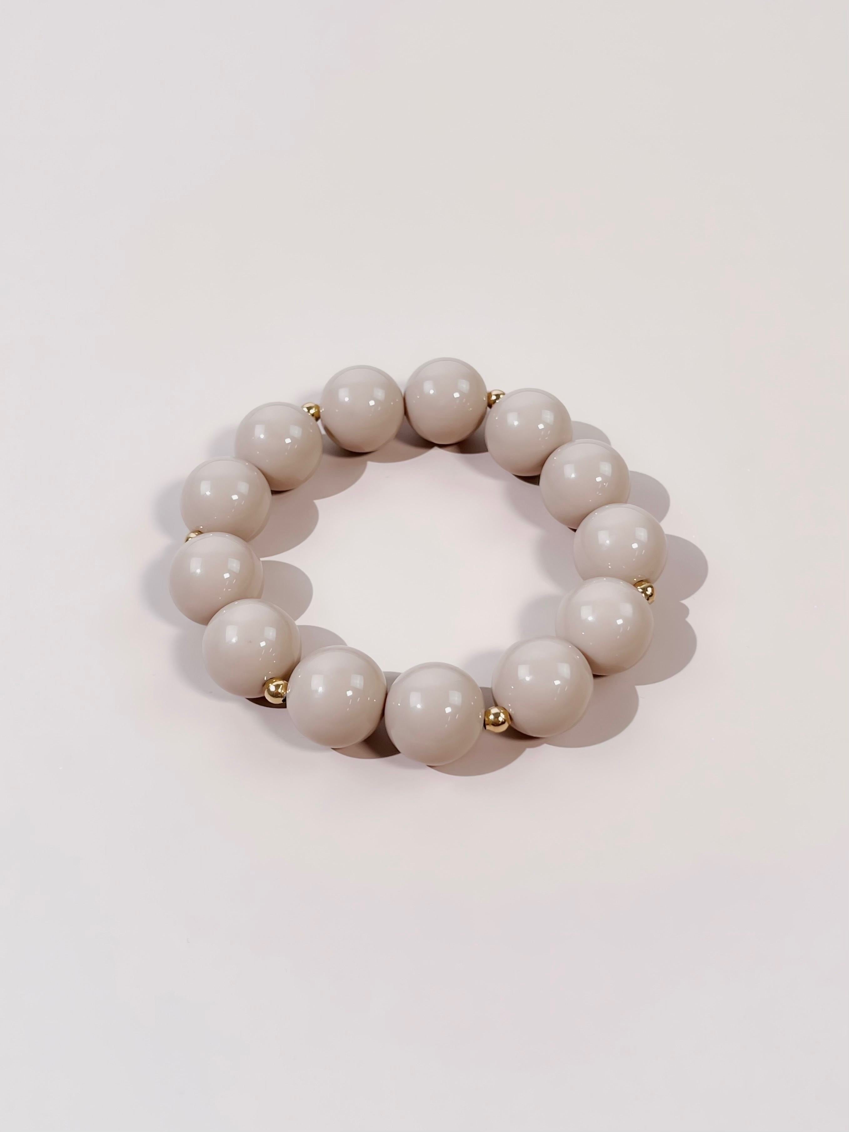 Ses perles beige rappellent la clarté d’une aurore et la paix des moments suspendus.