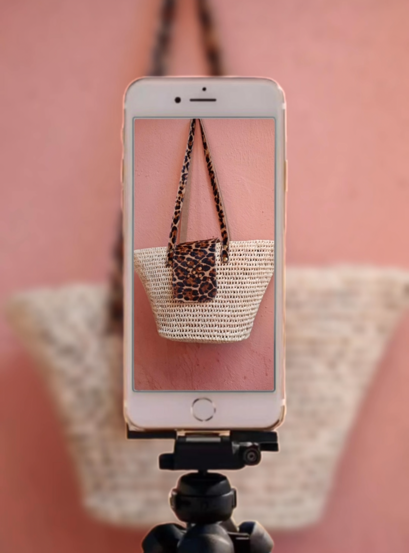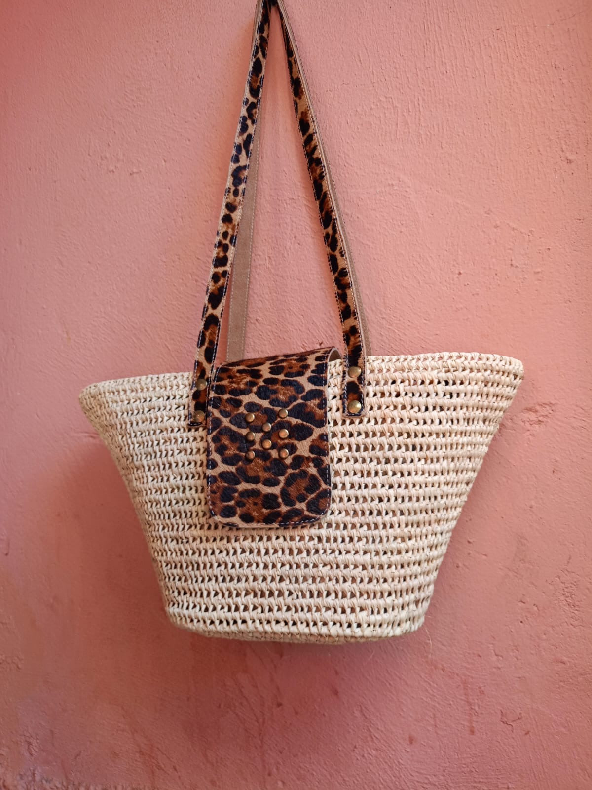 Panier SAVANA : Raphia & cuir léopard