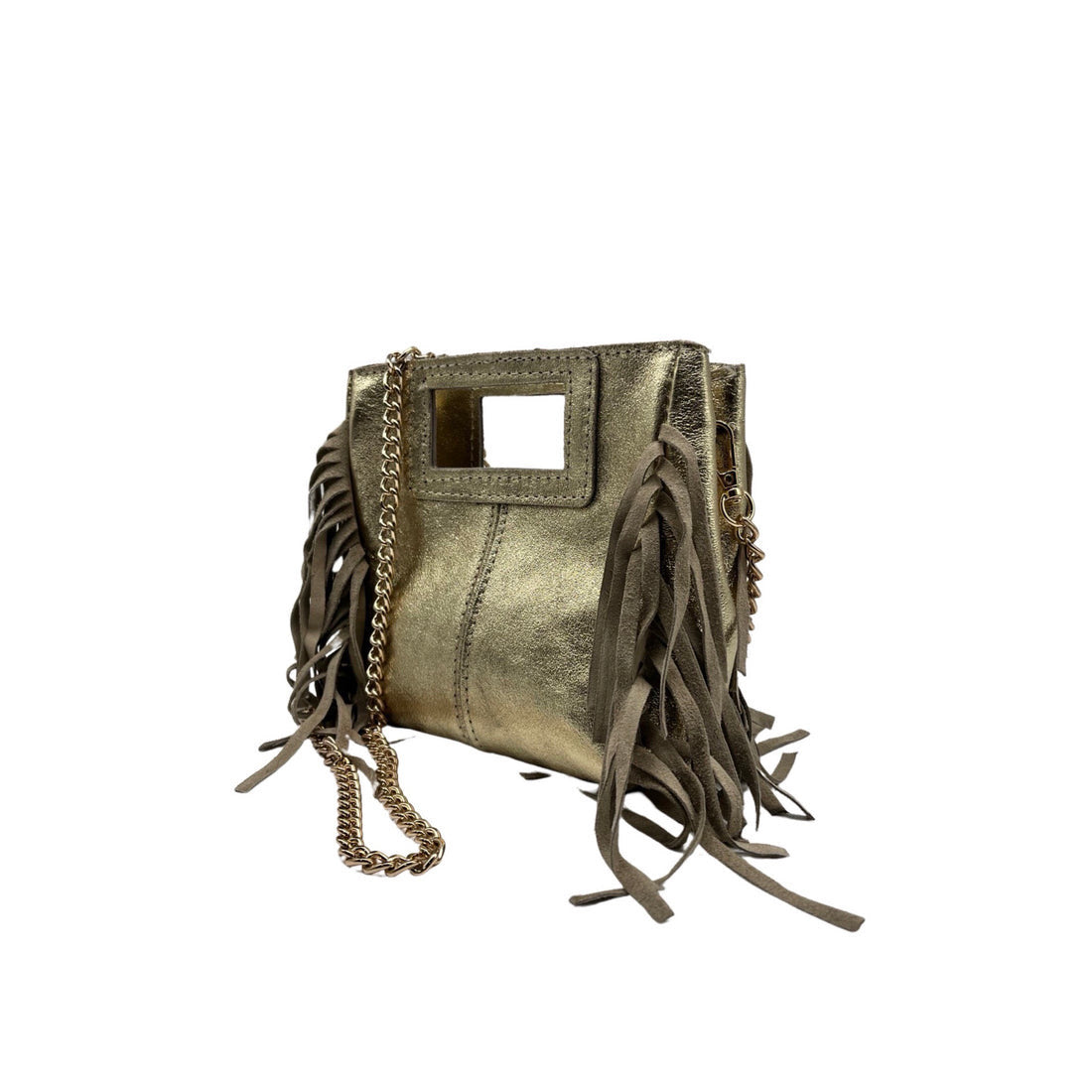 Conçu dans une matière cuir, il se distingue par ses franges fluides, son détail découpé façon poignée intégrée, et son allure naturellement élégante.