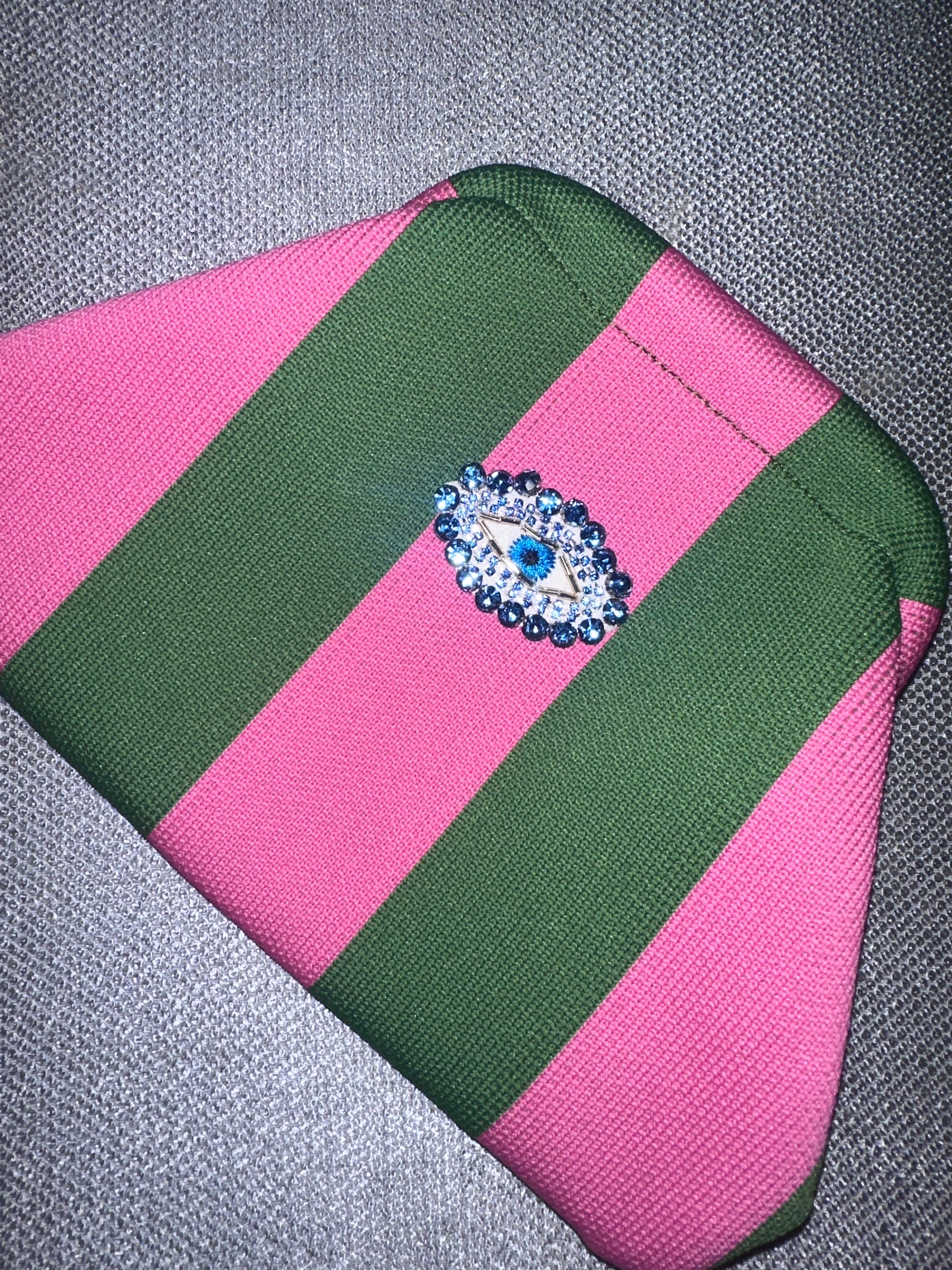 âą Pochette en tissu rayĂ© colorĂ© avec Ćil en pierre dĂ©corative scintillante