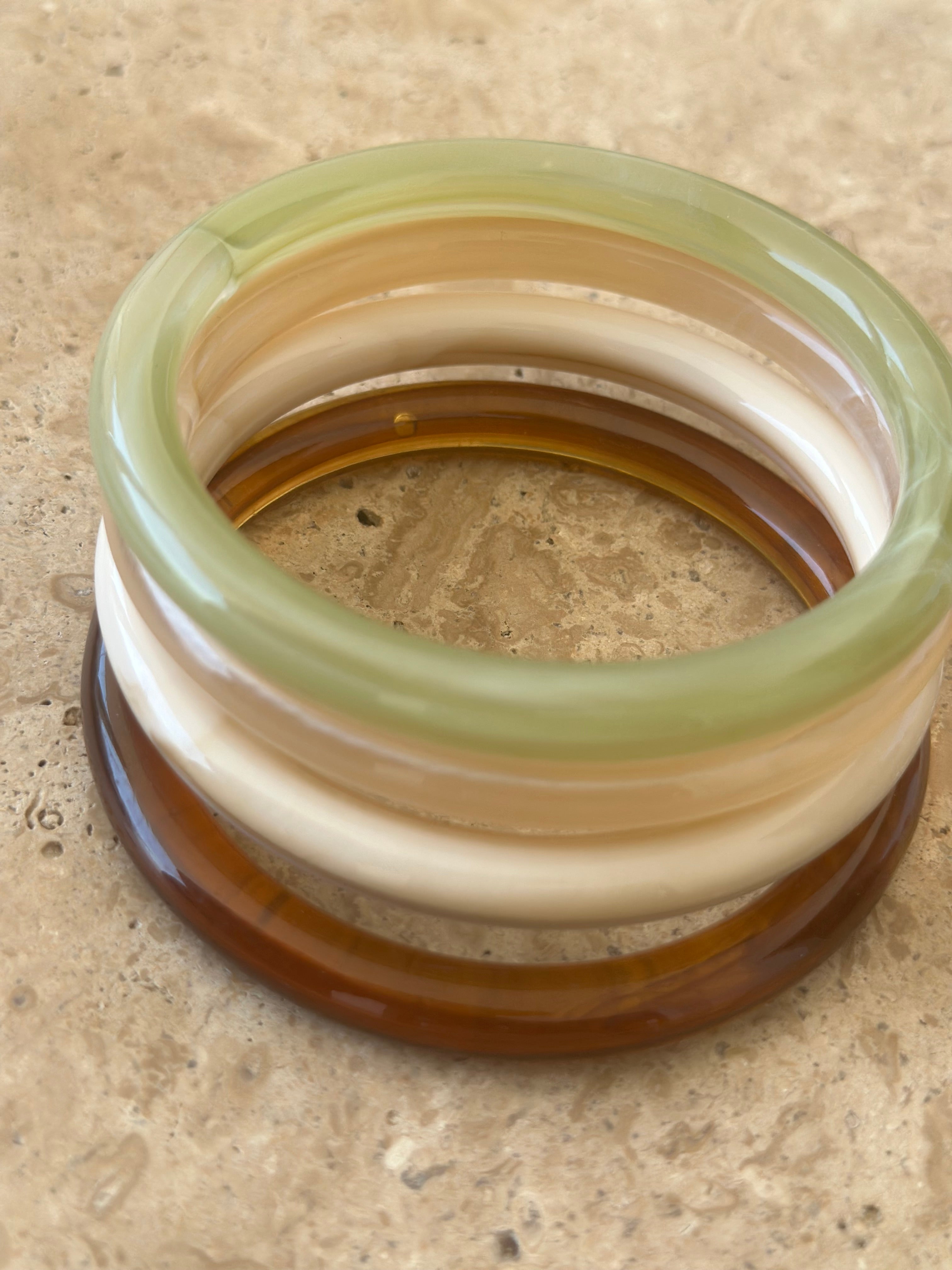 • Bracelet jonc en résine façon effet pierre naturelle (vert jade & beige)