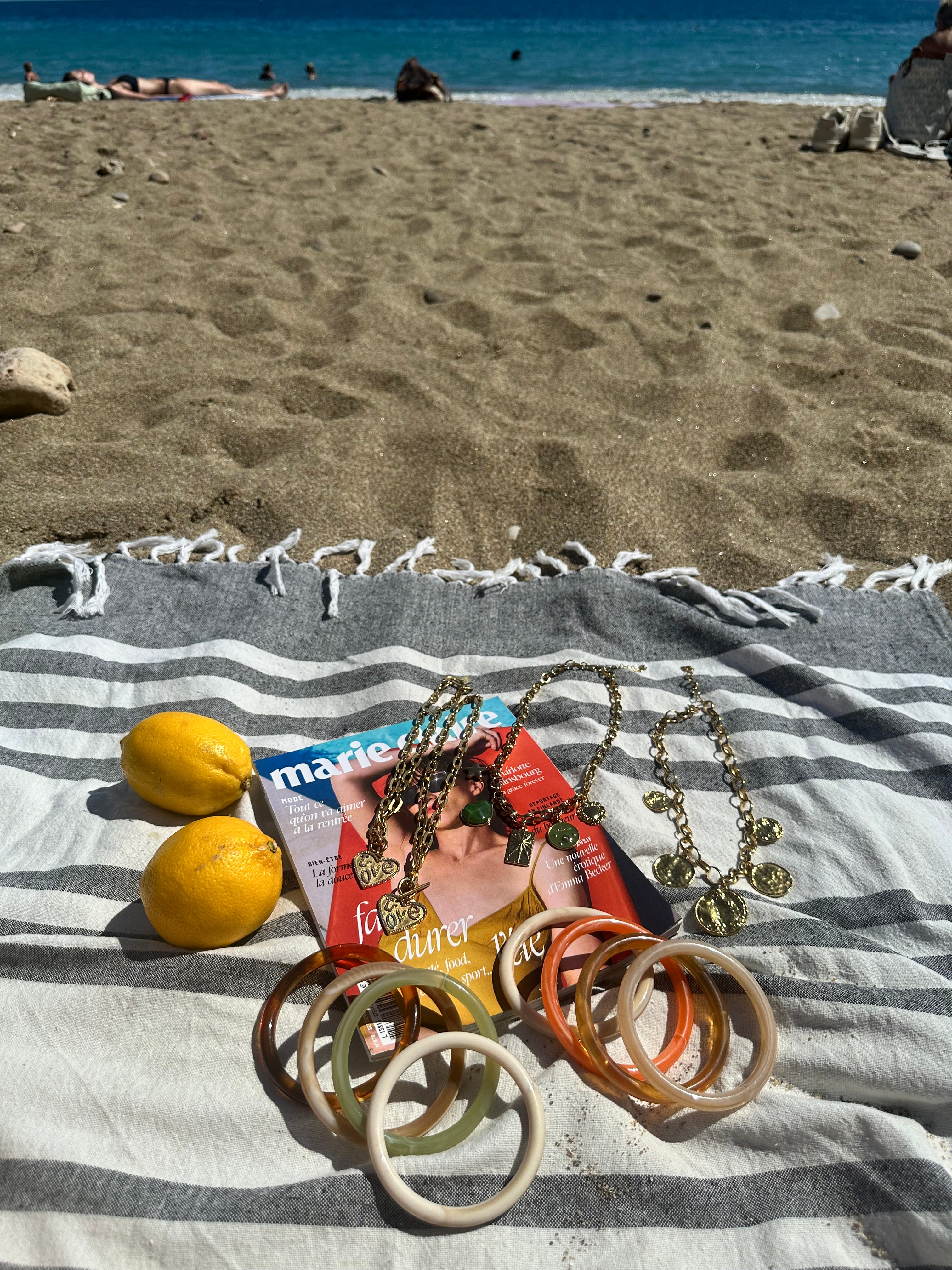 Chaque nuance reflète la lumière du soleil et la beauté brute de la nature, créant un bijou à la fois chic, minimaliste et empreint de spiritualité. Une création Maison K pensée pour les femmes libres, lumineuses et pleines de grâce.